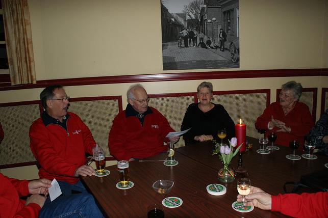 Het was een prachtig concert, na afloop werd het feestje voortgezet in de grote zaal van Het Wapen van Linschoten. Daar werd Arie nogmaals in het zonnetje gezet met een lied, speciaal voor hem geschreven.