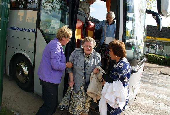 Onderweg in de bus genoten zij van het prachtige uitzicht en werd er volop meegezongen toen de buschauffeur een cd met liedjes van vroeger aanzette. Het was een mooie en een erg gezellige dag! Aan het begin van de avond kwamen zij weer aan in Linschoten.
