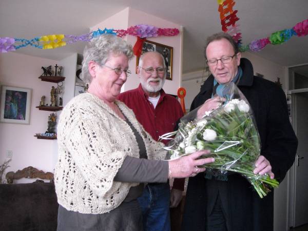 | Woensdag 16 februari bracht burgemeester Bert Jansen een bezoek aan de heer en mevrouw Kastelein-Blankers die hun 50-jarig huwelijksfeest vierden.