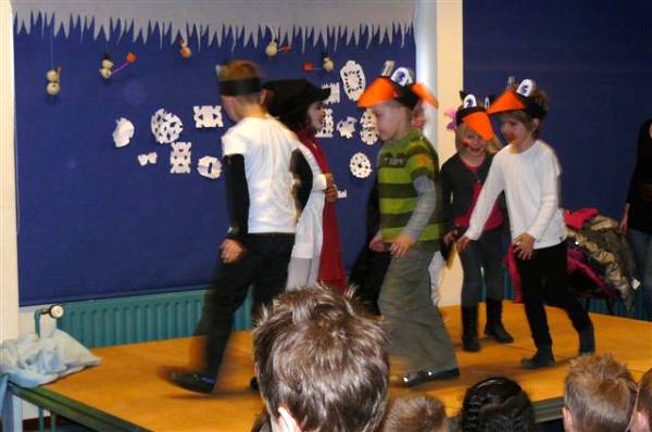 De kinderen van groep 1/2 c van De Hobbitstee hebben de musical van Simon de sneeuwman met heel veel plezier aan de kinderen van de onderbouw laten zien. Ze vonden het erg spannend, maar eenmaal op het podium speelden ze als echte sterren!
