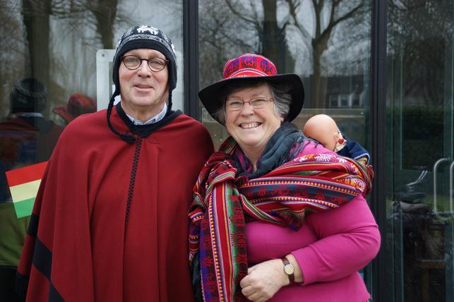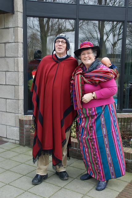 Echtpaar De Jong-Bakker geheel in een Boliviaanse sfeer.