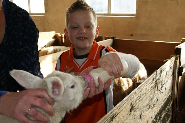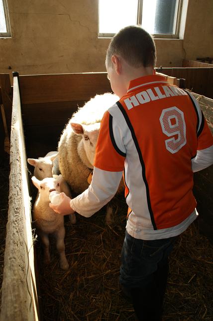 Er is zelfs een drieling geboren. Van de drieling moet er één lammetje iets bijgevoerd worden met de fles maar dat is voor kleinzoon Jasper geen probleem. Hij helpt zijn opa en oma graag.