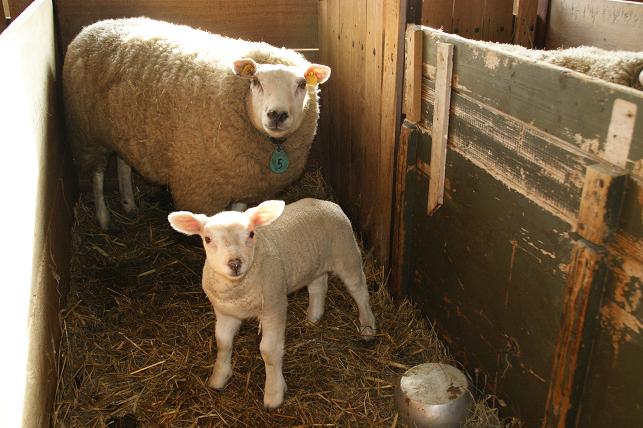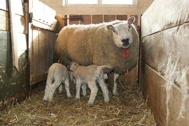 De allerjongste lammetjes staan met hun moeder samen, de iets oudere staan met meerdere soortgenoten in een grotere stal.