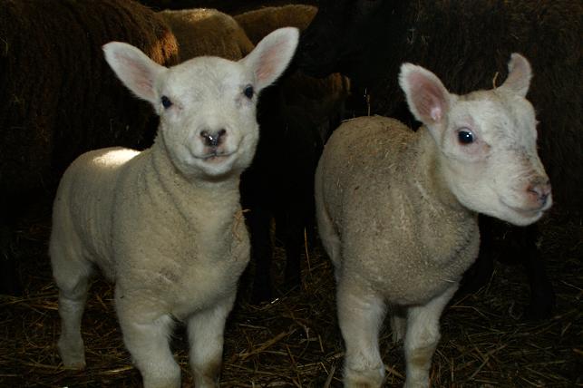 Deze twee lammetjes zijn erg nieuwsgierig naar alles wat er de stal binnenkomt.