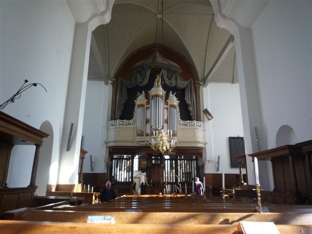 Na twee uur naderden we Breukelen. In de Pieterskerk van de Hervormde Gemeente stond de koffie klaar en na een uitvoerige rondleiding door deze prachtige kerk en het zingen van het pelgrimslied gingen we richting Baambrugge. Nog steeds onder een stralende zon wandelend lang het Amsterdam-Rijnkanaal kwamen we daar om 14.15 uur aan. Hier werd bij de Gereformeerde Kerk Postwijck in de buitenlucht geluncht en kregen we een rondleiding door de vrijwilligers in deze "schuilkerk".