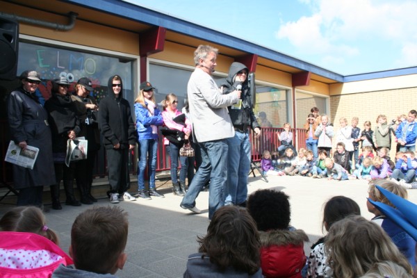In het kader van de verkeersweek hadden de kinderen van de onderbouw een verkeerswandeling gepland. Met de dure oefenverkeersborden die we in het begin van het jaar hadden gekocht gingen we speuren naar dezelfde borden in de wijk. Maar toen de zon opkwam boven de Heeswijkschool bleek er iets verschrikkelijks te zijn gebeurd. De peperdure oefenborden waren gestolen!