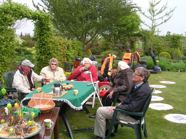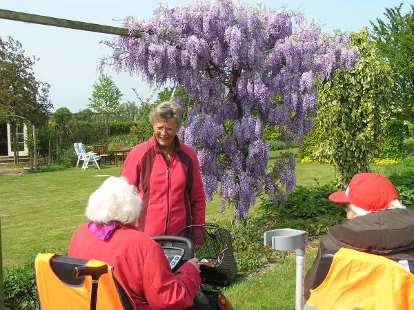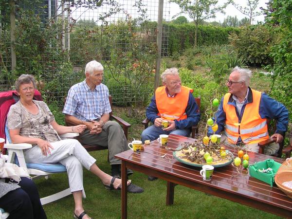 Eerst hun super tuin bekijken en dan koffie drinken met oranje koek.