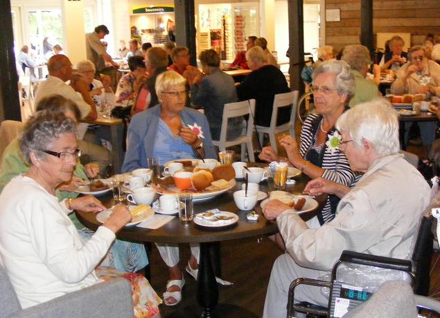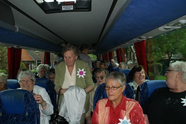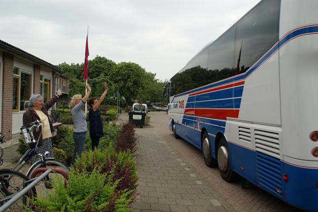 Op maandag 9 mei was het zover, ’s ochtends kwam er een grote touringcar de Strick van Linschotenstraat inrijden om te stoppen bij het verzamelpunt verzorgingshuis De Lindescote, waar de gasten eerst nog van een kopje koffie genoten.