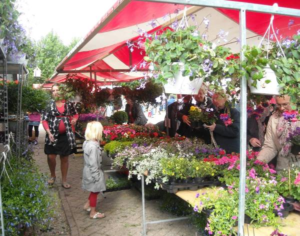 Er waren een 25 tal kramen, met allerlei artikelen, zoals prachtig serviesgoed, planten, speelgoed, fruit, 2e hands spullen en vis.