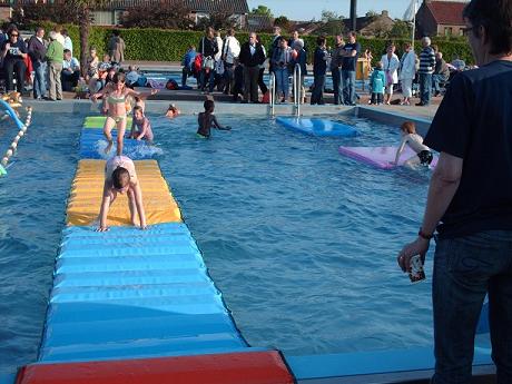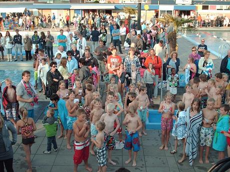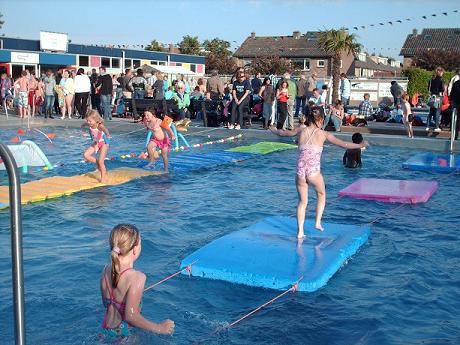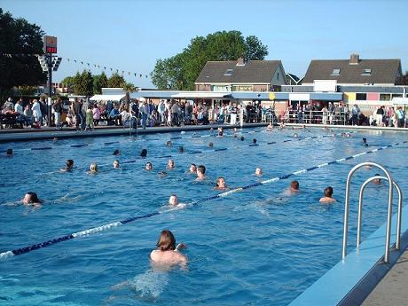 Het zwemseizoen is weer begonnen. Het zwembad in Montfoort bestaat dit jaar 50 jaar! Dit laten ze niet ongemerkt voorbijgaan. Een van de (jubileum) activiteiten is de Nationale zwem4daagse, die dit jaar voor de 36ste keer werd gehouden. De deelname viel iets tegen, vooral vanwege de slechte weersomstandigheden afgelopen maandag bij de start, maar … vrijdag waren de weergoden de zwemmers goed gezind en werd het een daverend slot, met o.a. een prachtige glijbaanrace. Er waren totaal 354 deelnemers, ongeveer 30 minder dan vorig jaar, waaronder 42 kinderen die deelnamen aan het waterfestijn omdat zij nog geen diploma hebben.