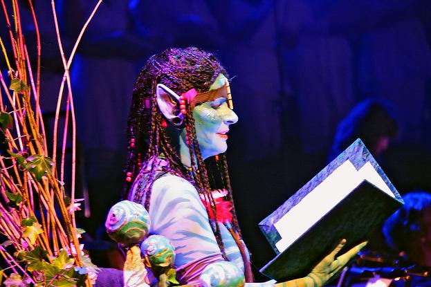 Aan de hand van een schitterende Navi (Joke van Diest), een inwoner van de planeet Pandora (uit de film Avatar) gekleed en gegrimeerd door Marja Verkerk en Ellen van der Klis) maakten we een muzikale reis over onze wereld. De muzikale opening van dit concert was voor het orkest Musical Souvenir. De vaste dirigent van het orkest had vol vertrouwen het stokje overgegeven aan de dirigente en mede-oprichtser van het jubilerende Cessibon, Monique van den Hoogen. I see you, de groet van de Navi, waarmee dit prachtige wezen veel meer bedoelt dan een simpele groet, het is een blijk van erkenning, herkenning van een gelijke, als deel van een groter geheel. For the beauty of the Earth was het eerste lied waarmee het publiek kennis maakte met Monique als koor- en orkestdirigente. Heel knap zoals zij daar stond te dirigeren en terwijl ik luisterde naar de prachtige 19e eeuwse tekst van Pierpoint en de schitterende compositie van John Rutter, besefte ik dat in Cessibon alles samen valt. Schoonheid van de muziek en de liefde en waardering voor elkaar maken een avond als deze zo bijzonder.