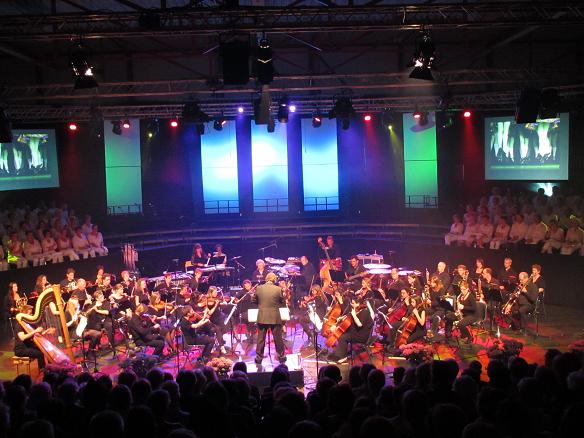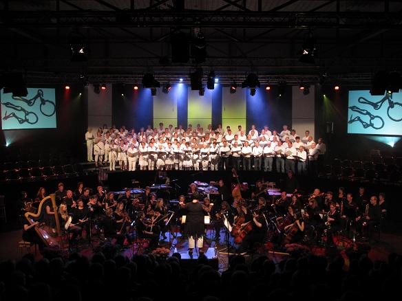 | Voordat het totale koor nog eenmaal met 90 man alles wat zon grote groep mensen tot een mooi koor maakt (met solowerk van Anita Tromp en Bart Essink) uit de kast haalde in Somebody to Love, geschreven door Freddy Mercury, was er nog een optreden van het orkest met Lord of the Dance.