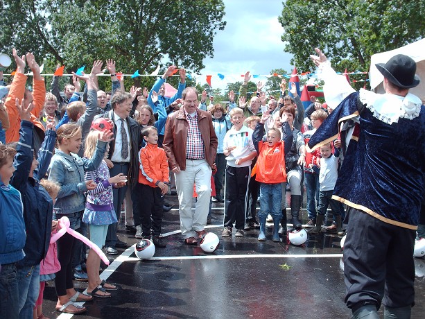 Zaterdag 18 juni is onder grote publieke belangstelling het vernieuwde Doelenplein overgedragen aan de kinderen.