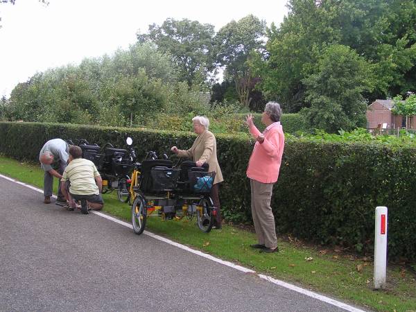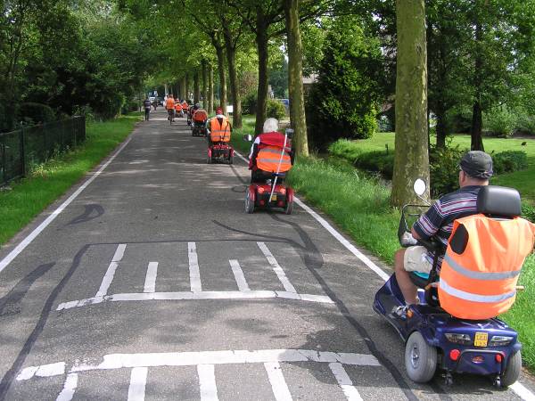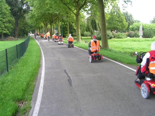 Scootmobielclub Montfoort op weg naar Jans Griffioen in Harmelen .