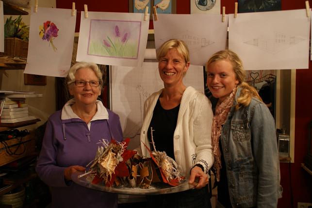 Drie generaties bekijken het eindresultaat van een creatieve week.