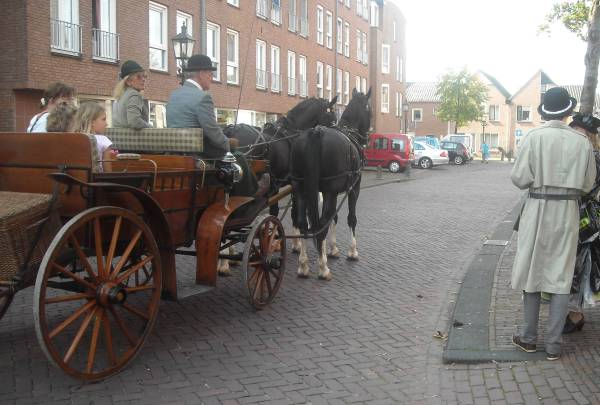 Er reed een originele Duitse reis- en jachtwagen langs de historische panden. Kinderen konden gratis een rit maken.