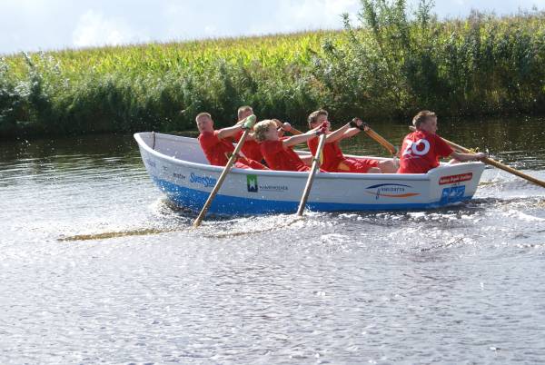 IJsselstein Nederlands Kampioen Traditioneel worden de finales van het Nederlands Kampioenschap Vletroeien geroeid in IJsselstein. Vooral bij de heren was het dit jaar spannend, vr de finale stonden de teams uit Rotterdam en IJsselstein nog gelijk in de stand na vijf wedstrijden. IJsselstein kwam voor thuispubliek als eerste over de finish, maar verloor in de laatste ronde de stuurvrouw. Dit kostte de roeiers 60 strafseconden. Er bleven echter zeven seconden voorsprong over, net genoeg om de overwinning te pakken en Nederlands Kampioen te worden. Bij de dames was het de reddingsbrigade uit Petten die haar titel prolongeerde. s Gravenzande werd bij de jeugd Nederlands Kampioen.
