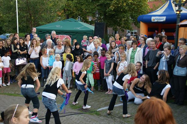Het werd één groot en gezellig dorpsfeest op de Hoge Werf. Er waren diverse optredens van Linfano, Zanglust, Sterk Spul, De Trekzakgroep en Dancestudio Attitude 54. Ook werd er een modeshow gelopen met exotische kleding. De allerkleinste buurtjes konden zich uitleven op een springkussen.