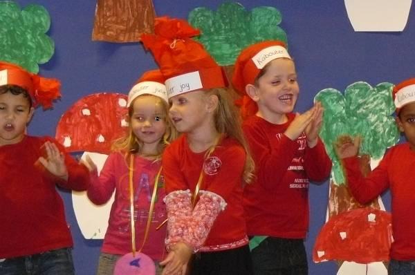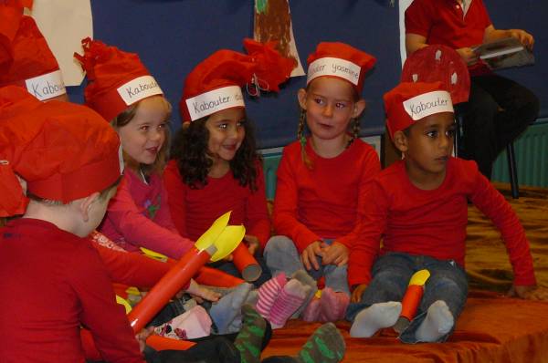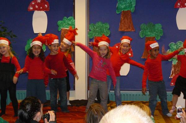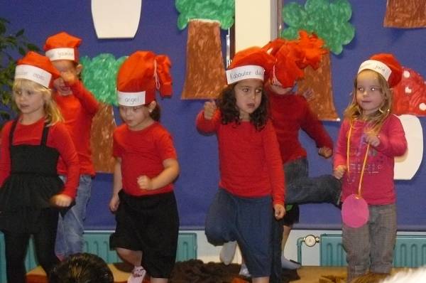 De kinderen van groep 1 hadden zelf het decor gemaakt. Moe maar tevreden kunnen ze nu van de herfstvakantie gaan genieten.