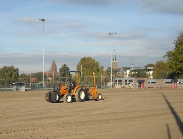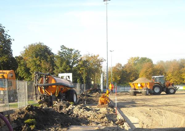 Aan de Parklaan in Montfoort, bij de hockeyvelden, wordt hard gewerkt. De renovatiewerkzaamheden aan veld 1 lopen volgens planning.