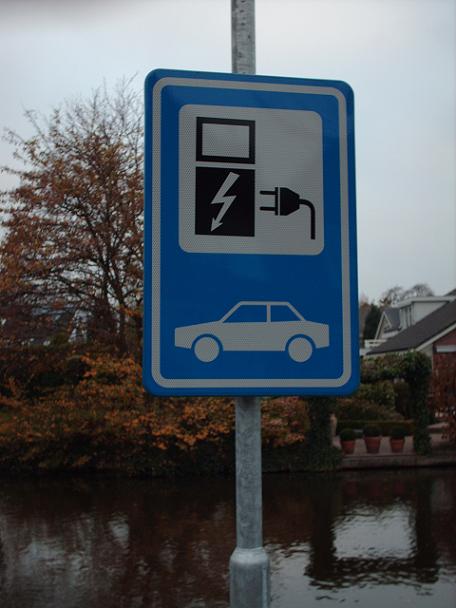 De oplaadplaats is herkenbaar aan dit bord, dus geen andere auto's parkeren