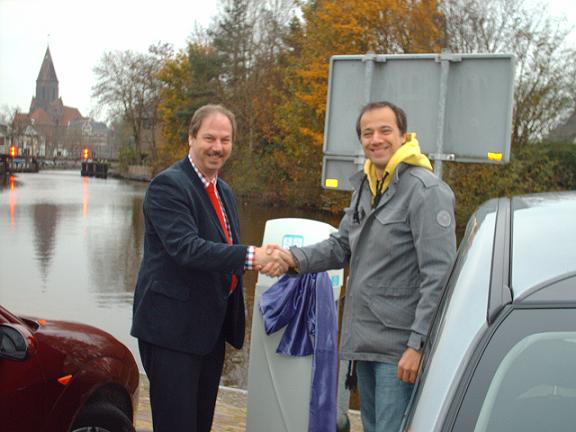 Op de Dag van de Duurzaamheid (vrijdag 11 november) heeft wethouder Jonkers een van de vier oplaadpunten voor elektrisch rijden feestelijk onthult. In de elektrische auto van Linschotenaar Edwin Glaser kwam wethouder Jonkers om 8.45 uur aanrijden bij het oplaadpunt aan de Waterpoort. Wethouder Jonkers gaf daar een korte toelichting op het elektrisch rijden en de ambitie van de gemeente. Ook de heer Glaser kwam aan het woord om zijn ervaring als elektrisch rijder te vertellen.