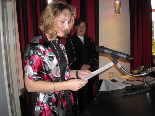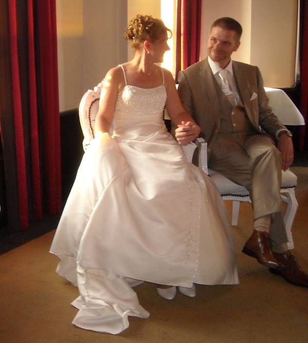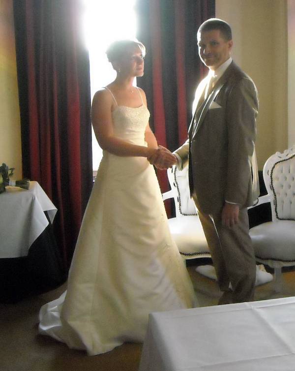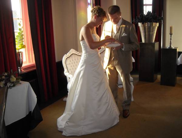 In het kasteel te Montfoort werd een mooie trouwceremonie gehouden. Ambtenaar van de burgerlijke stand Aafke Voet hield een  mooie speech, waarin ze inging op al die regels waaraan de in Roemenie geboren Sawa moest voldoen. “Liefde maakt een sprookje van het normale leven, en is universeel,” zei de trouwambtenaar.