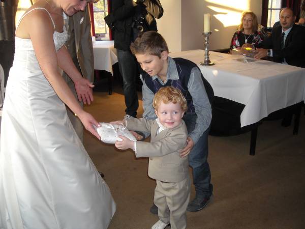 Hun stoere zoon bleef, tot verbazing van iedereen, de hele ceremonie rustig op schoot zitten.