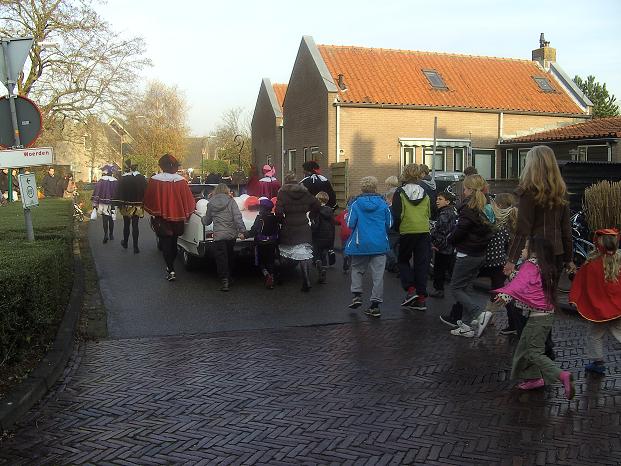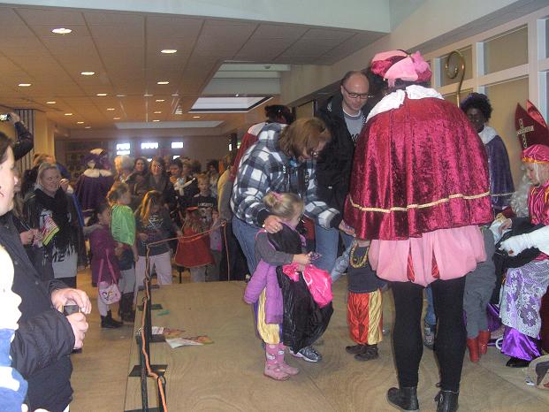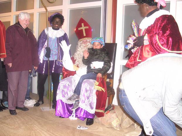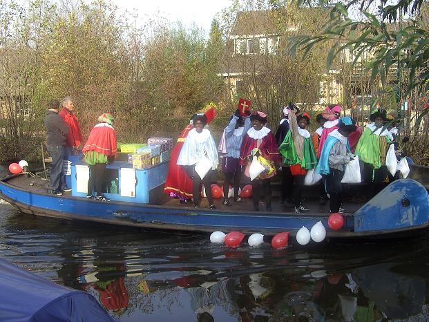 Vele kinderen stonden hem 's middags op te wachten bij de 5 Decemberkade om na de ontvangst op het bordes bij Het Wapen van Linschoten met z'n allen het feest voort te zetten in De Brede Vaart.