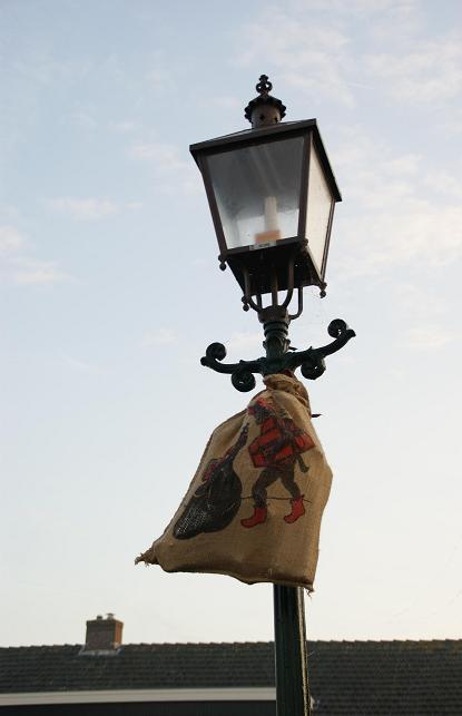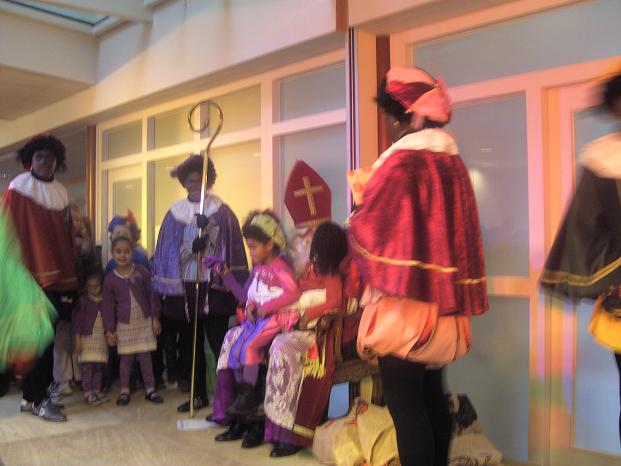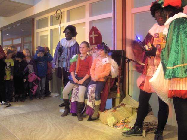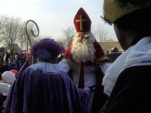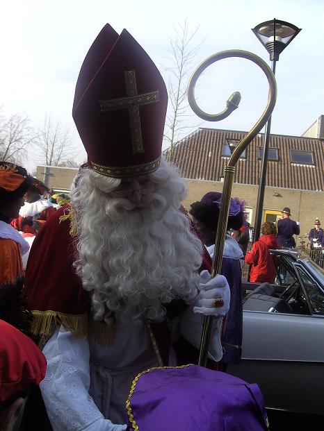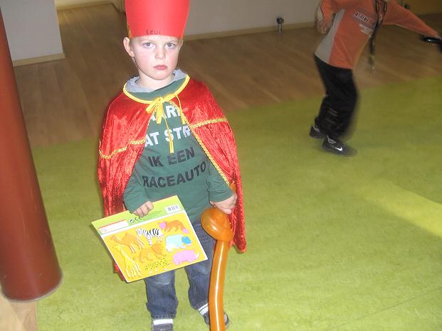 ...met een mijter en de staf van Sinterklaas. Maar waar blijft Sinterklaas...