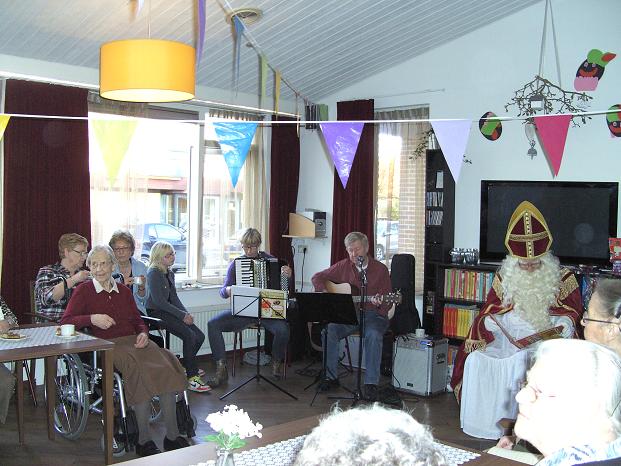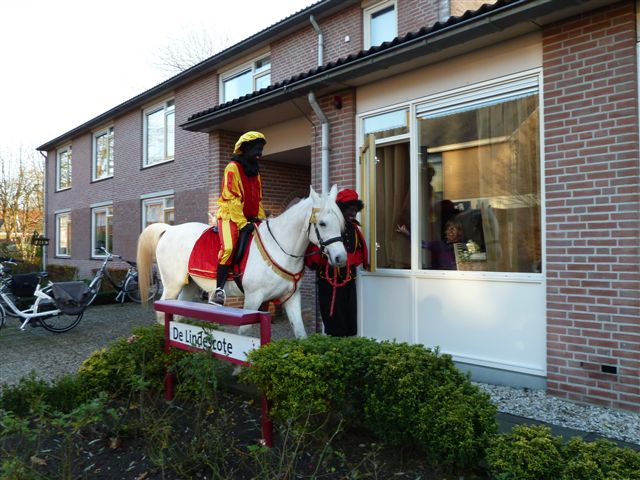 Woensdagmiddag 30 november brachten Sinterklaas, twee Zwarte Pieten en het paard van Sinterklaas een bezoek aan de bewoners van verzorgingshuis De Lindescote in Linschoten.