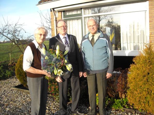 Woensdag 14 december bracht burgemeester Jansen een mooie bos bloemen bij de familie Waal- Kok op Blokland (Montfoort) en feliciteerde hen met hun 50 jarige bruiloft.