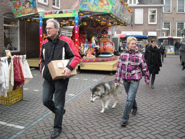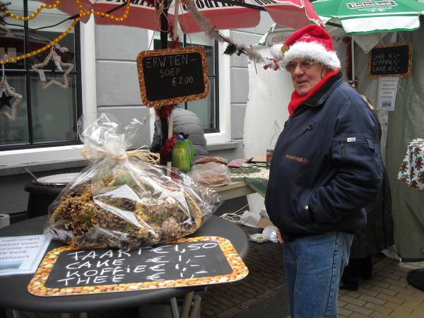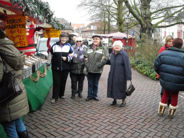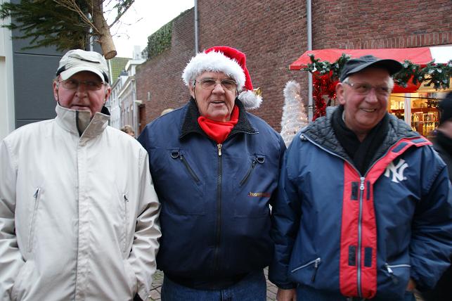 Bovenstaande twee heren (links en uiterst rechts) lopen samen vele kilometers in en rondom Montfoort. Deze dag werd het een wandeling over de gezellige Kerstmarkt. |