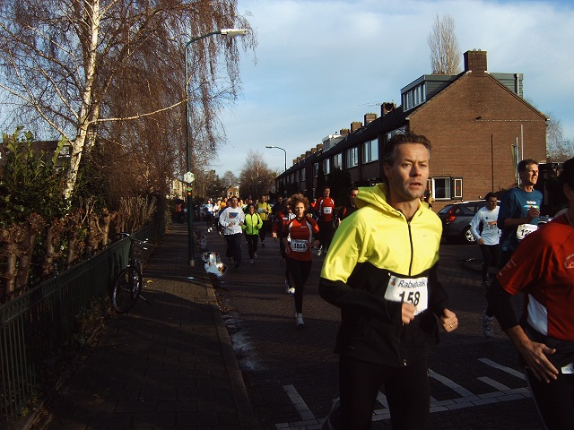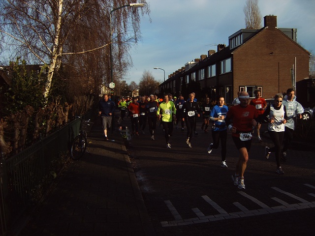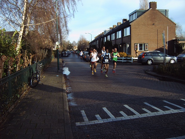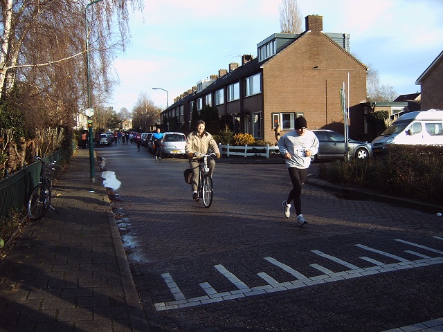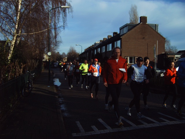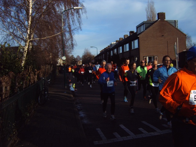 De lopers van de 5 km op de Van Rietlaan op weg naar het fietspad langs de M.A. Reinaldaweg om vervolgens de Lage Kade op te gaan.
