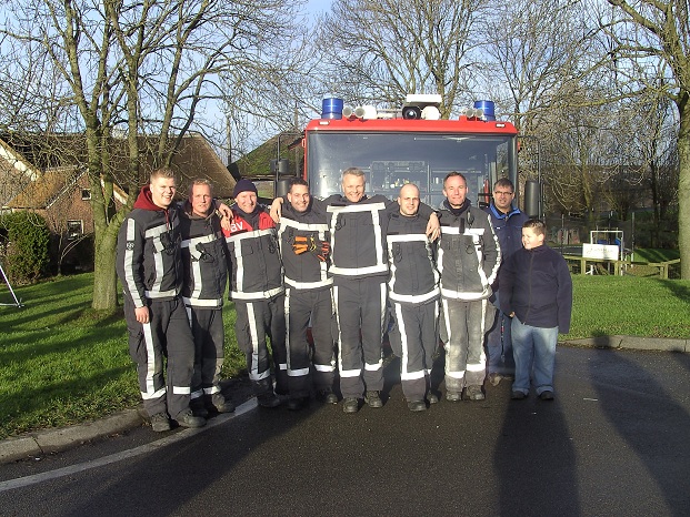 Gezellige groep supporters van het Brandweerkorps Linschoten.