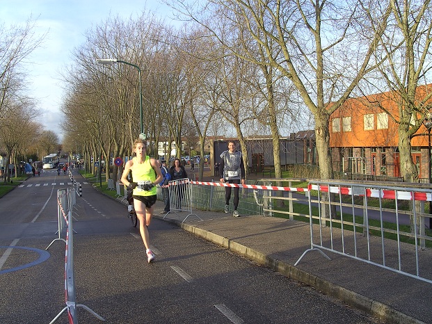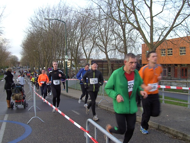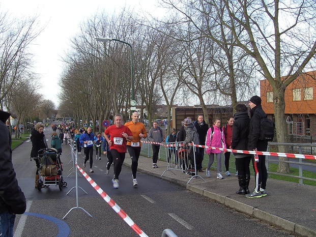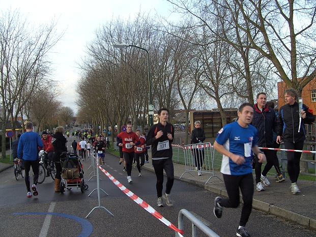 Op bovenstaande foto komen de lopers van de 10 km bijna bij de finish aan.