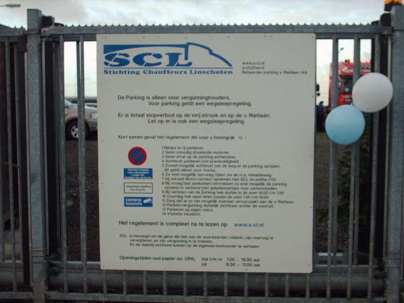 Op vrijdag 6 januari werd op feestelijke wijze, na een discussie van tientallen jaren, gezamenlijk door de initiatiefnemers van SCL (Stichting Chauffeurs Linschoten) en wethouder Jonkers de nieuwe vrachtwagenparkeerplaats in de Van Rietlaan Linschoten feestelijk geopend.