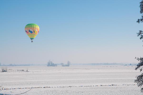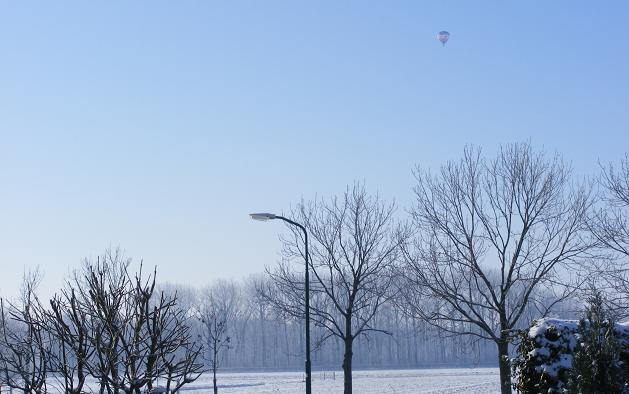 Naar aanleiding van de bovenstaande foto's van Cor Verschuur stuurde Theo Beijersbergen uit Montfoort de onderstaande foto op van een luchtballon boven het Montfoortse winterlandschap.