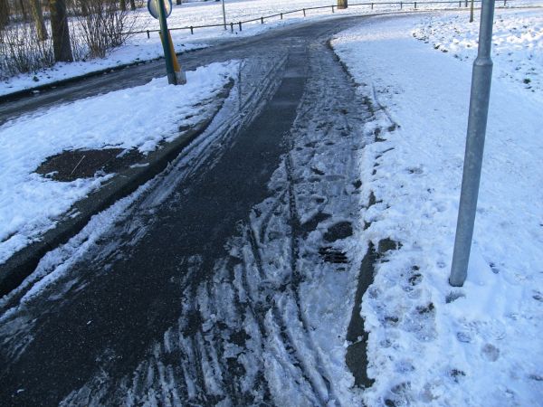 “De fietsroute van de scholieren richting scholencomplex is gevaarlijk,” zo vertelde mevrouw F.” “De brug over de gracht is gestrooid, en is redelijk begaanbaar. Het aansluitende fietspad vraagt echter om ongelukken. Zeker met de tientallen scholieren die deze route moeten volgen.”