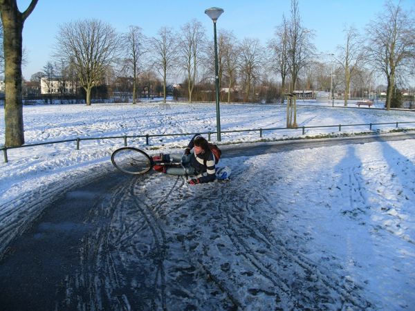 "Er zitten gemene bochten in het pad," zo vertelde deze onfortuinlijke fietser..