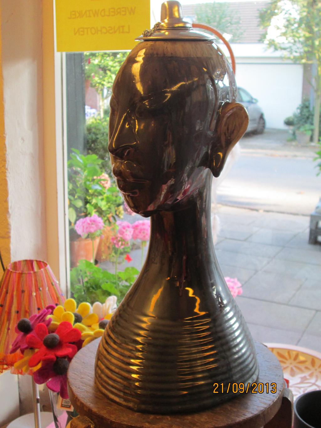 In het kader van de Linschotense Kunstroute afgelopen weekend heeft Wereldwinkel Linschoten een kunstwerk verloot. Voor € 1,- konden klanten van Wereldwinkel Linschoten een gokje wagen om een prachtige Afrikaanse vrouwenkop van keramiek, met een oliebrandertje als hoedje, te winnen. Veel mensen kochten een lootje.