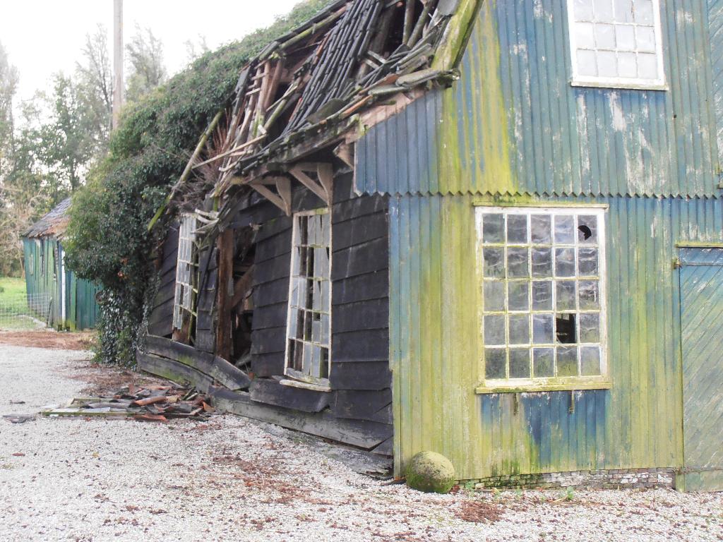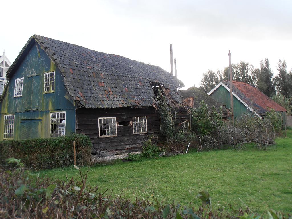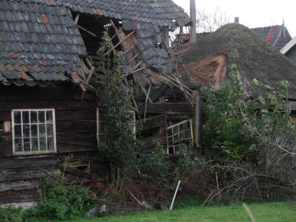 De oude schuren en de hooiberg naast de monumentale boerderij van Cromwijk op de Liefhovendijk in Linschoten staan nog overeind, maar hebben toch weer een beetje te lijden gehad door de herfststorm. Hier en daar zijn er hout en dakpannen naar beneden gekomen.