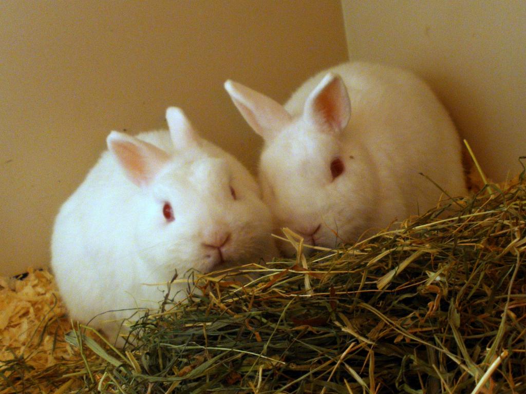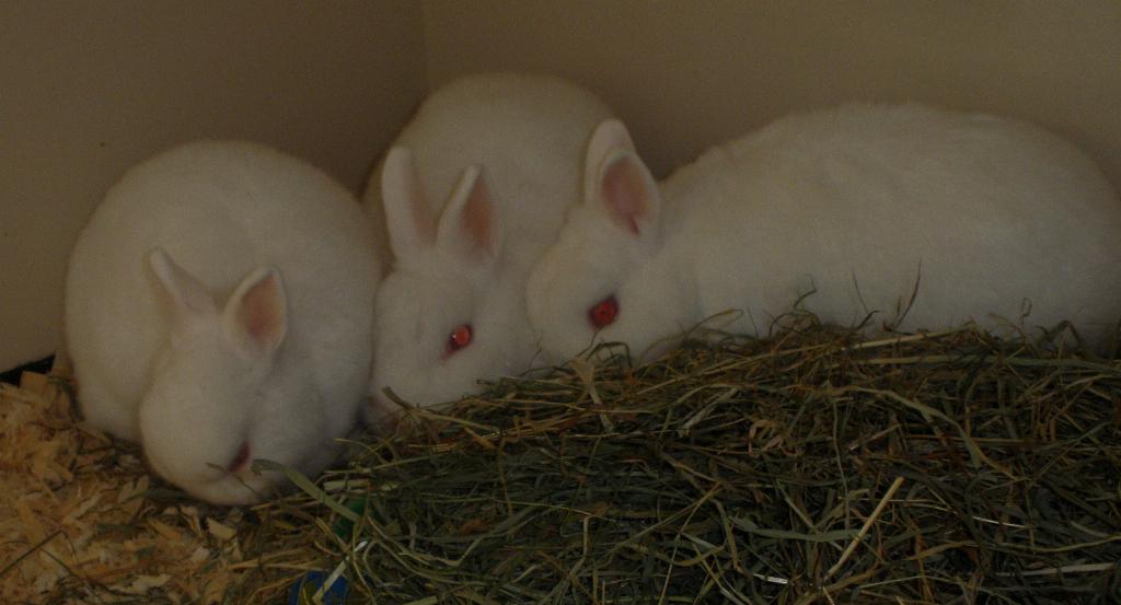 Mogen wij aan u voorstellen, de drie musketiers. Ze zijn wit en hebben rode oogjes en dus zijn het albino’s.   Konijnen wel te verstaan.