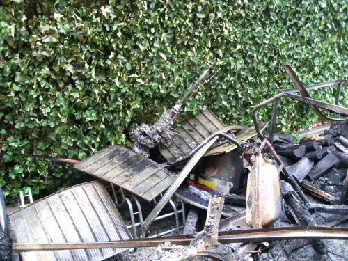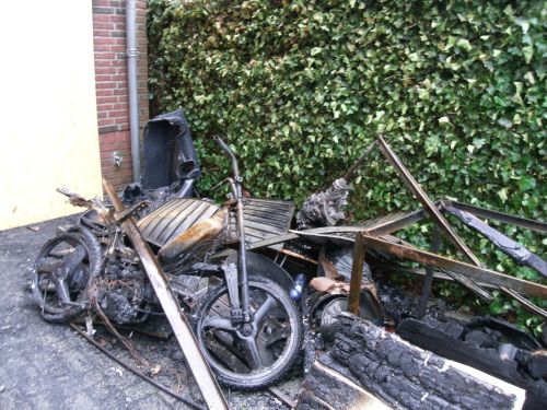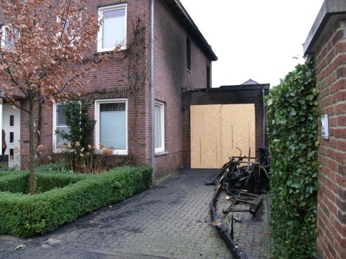 “Onze zoon kwam ‘s avonds laat thuis, en werd verrast door de vlammen toen hij de deur van de schuur opendeed. Hij alarmeerde iedereen, waarop mijn man de laptop nog kon redden. De brand bleef gelukkig beperkt tot de garageschuur, maar het huis is voorlopig onbewoonbaar door rookschade.”