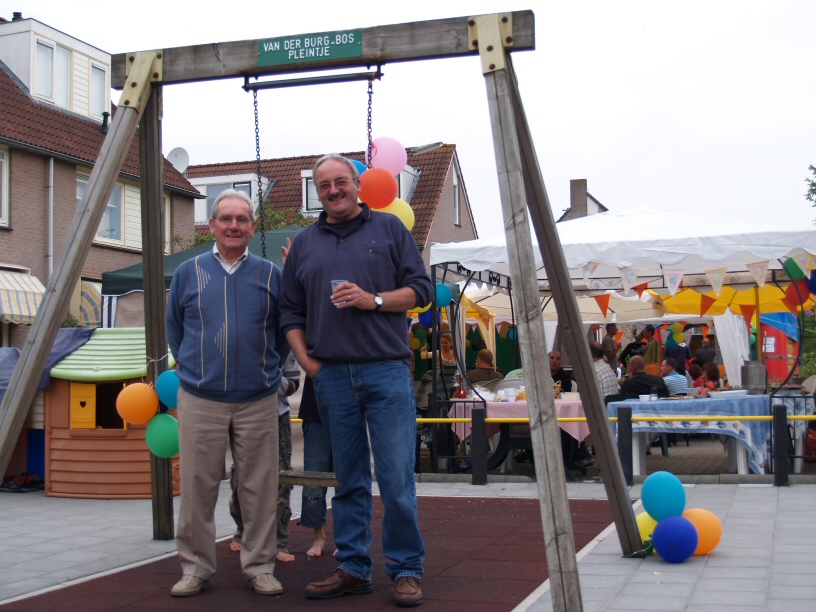 Tijdens een gezellig straatfeest aan de Roelof de Roverlaan en de Johan de Ridderlaan werd het speeltuintje aldaar officieel benoemd tot het 'van der burg_bos pleintje'. Met op de houten schommel een heel eigen naambordje. Natuurlijk was er nog meer gezelligs te doen, een luchtkussen, muziek en een BBQ voor de hongerigen.