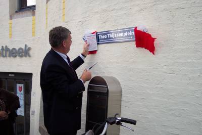 Onthulling niewe pleinnaam door wethouder Jan Vinkenburg