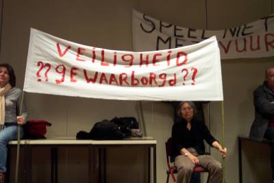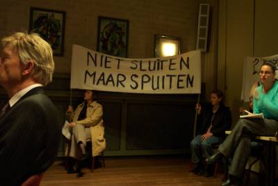 Postcommandanten Ben de Goey en Ben van Eijk waren twee van de sprekers die ingingen op het sluiten van een van de kazernes. Vele belanghebbende van de brandweer waren aanwezig om te spreken of steun te betuigen. Zij hadden er werk van gemaakt en kwamen aan met spandoeken met teksten als; Niet sluiten maar spuiten. Ook de brandweerauto’ waren mee.