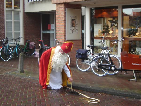 Op een gegeven moment kwamen er 3 Pieten binnen zij droegen alle 3 de staf van hun Sinterklaas en begonnen pepernoten te verdelen. De feestvreugde kwam tot een hoogtepunt toen er ook 3 Klazen verschenen. Blijkbaar was er één van de Sinterklazen aan het trainen voor de 4daagse want hij kwam met Nordic Wandelstokken binnen,