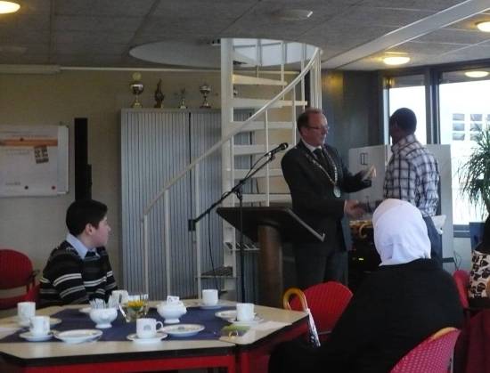 Ze zijn goed ingeburgerd, zei burgemeester Jansen. Na een lange tijd van onzekerheid hebben ze nu een verbeterde status, mede dankzij de vele vrijwilligers van vluchtelingenwerk.