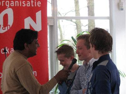 In deze oprechte boodschap kon De Publieke Zaak zich meteen vinden. Daarom reikten Barbara Besançon, de algemeen manager van De Publieke Zaak, en Prem Radhakishun symbolisch de eerste Slingerspeldjes uit aan drie jonge medewerkers van VLOH-radio in Hilvarenbeek; Pieter van Bussel, Willem van Woezik en Jeroen Kiemeney. Daarnaast ontvangen alle lokale oproepen deze week hét symbool voor maatschappelijke betrokkenheid.De Publieke Zaak dankt de OLON hartelijk voor de samenwerking en kijkt terug op een zeer geslaagde Slingeractie!
